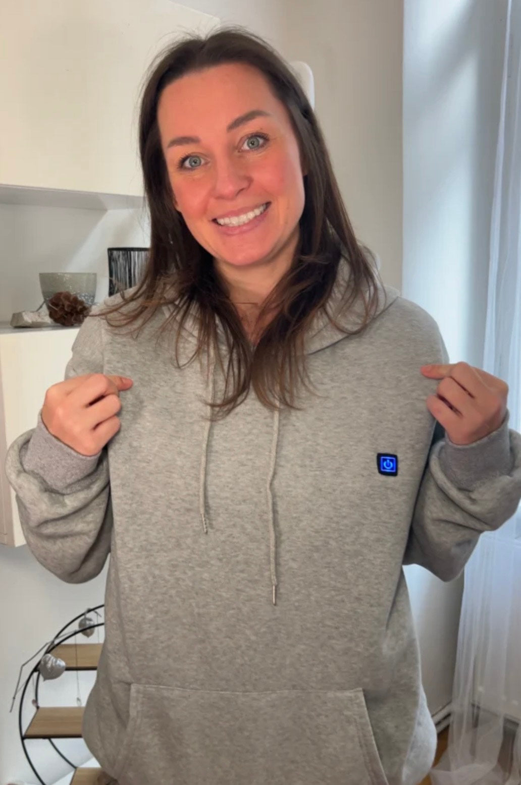 Schalte ihn einfach ein und spüre sofort, wie der Hoodie dich aufwärmt.